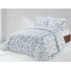 Conjunto de colcha de bouti estampado y fundas de cojín a juego de 50X70, con volante bordado en los extremos. Guateada con un relleno ligero que le aporta relieve y su tejido esmerilado un tacto suave y agradable. Este conjunto es ideal como colcha para entretiempo y verano. Las medidas para cama pequeña incluyen una funda de cojín y las de cama grande dos, el relleno de las fundas de cojín no está incluido.Viene presentada en una bolsa de tela ideal para guardar cosas u otras múltiples funciones.