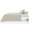 Conjunto de colcha con dibujo geométrico y fundas de cojín a juego de 50X70. Guateada a pequeños cuadros con un relleno ligero que le aporta relieve y su tejido lavado a la piedra un tacto muy muy suave y agradable. Este conjunto es ideal como colcha para entretiempo y verano. Las medidas para cama pequeña incluyen una funda de cojín y las de cama grande dos, el relleno de las fundas de cojín no está incluido.100% Poliéster